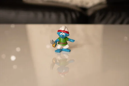 Daylight - The ‘daylight’ setting assumes the photo is being taken outside on a cloudless day with plenty of sunlight. With sufficient daylight coming through the window this photo is quite accurate. The table is white, and the colours of our quite stunning Smurf model are accurate.